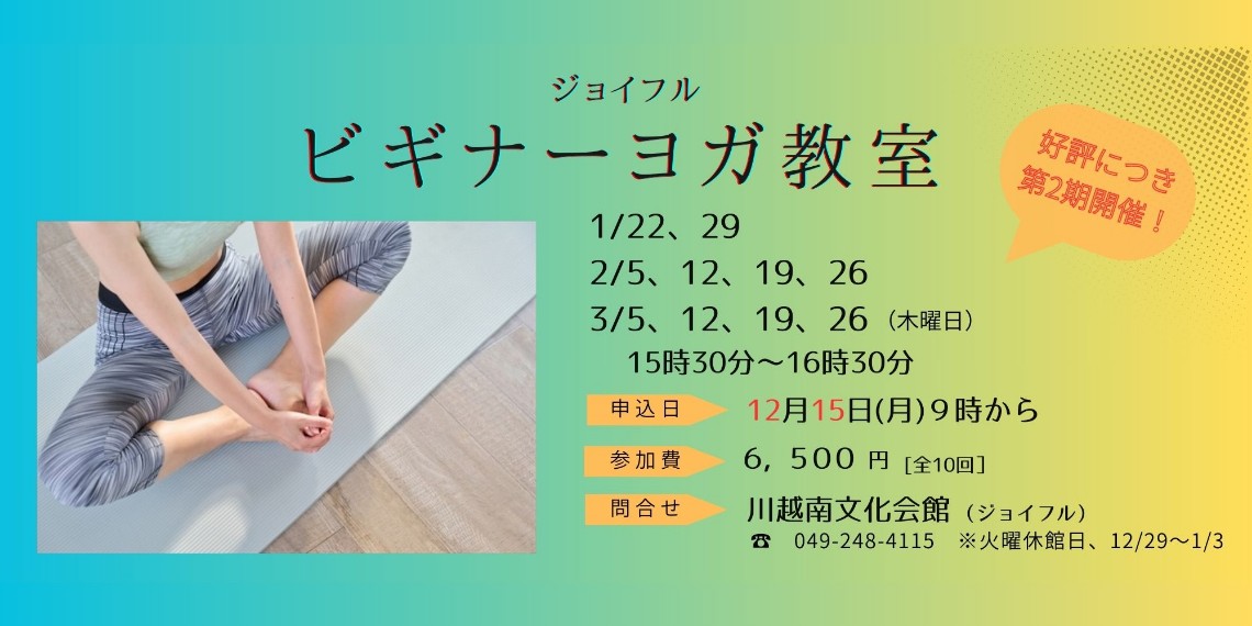【受付終了】令和7年12月-令和8年3月開講 ヨガ教室・ピラティス教室