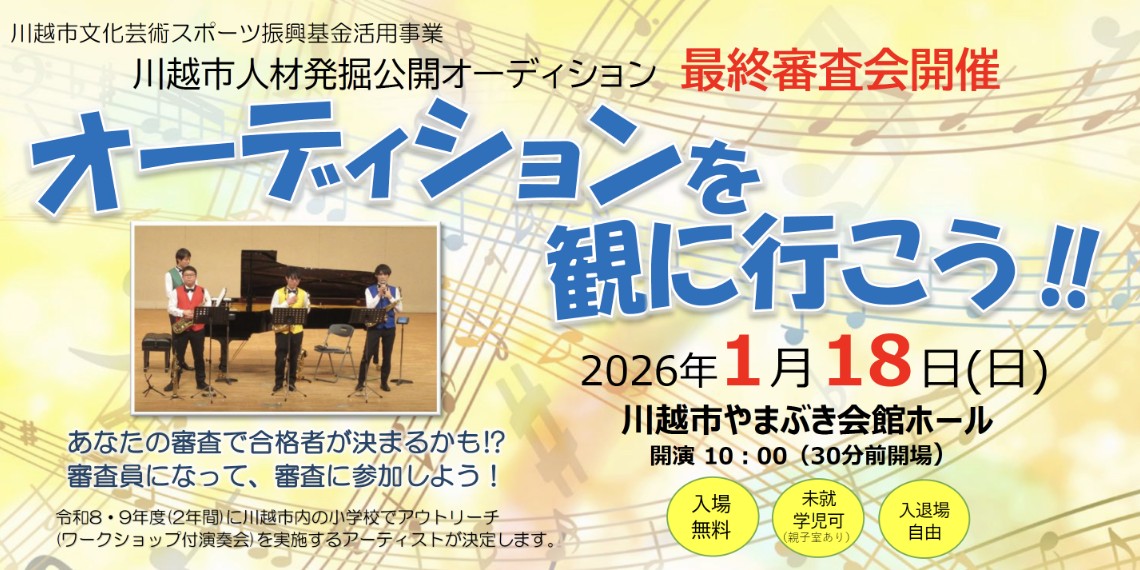 【入場無料】1/18(日)開催 川越市人材発掘公開オーディション 観覧のお誘い
