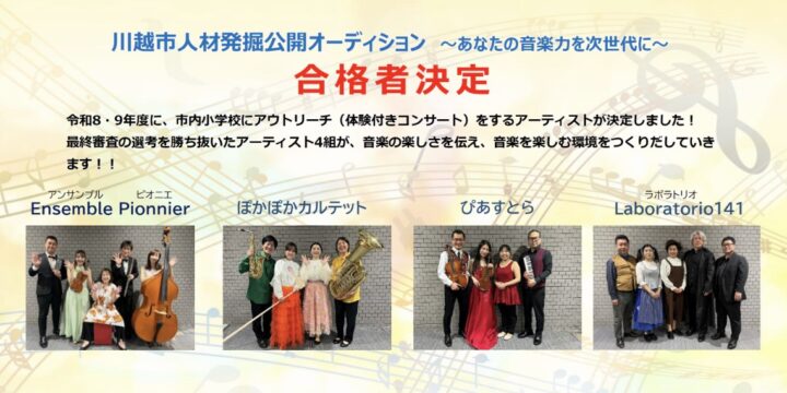 ※令和7年度川越市人材発掘公開オーディション最終審査は終了しました。 当日はご来場ありがとうございました。 合格者の発表はもうしばらくお待ちください。