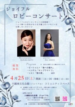問合せ:川越南文化会館ジョイフル 049-248-4115(休館日:火曜日、祝日の場合は翌日)