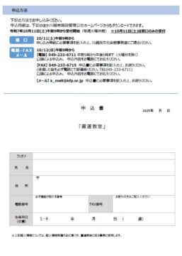 申込用紙 に必要事項を記入のうえ、川越西文化会館メルト 事務室窓口 にてお申込みください。
