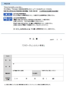 申込用紙 に必要事項を記入のうえ、川越西文化会館メルト 事務室窓口 にてお申込みください。