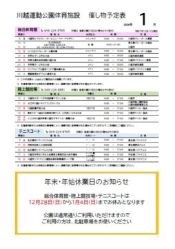 » 川越運動公園体育施設 催し物予定表 2026年1月(PDFファイルが開きます)
