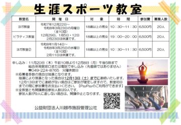 令和7年12月-令和8年3月開講 生涯スポーツ教室のご案内(ヨガ教室・(2)・ピラティス教室)