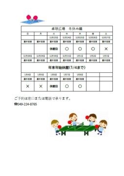 総合体育館では、冬休みの期間中、どなたでも気軽に卓球を楽しめる部屋を開放します。